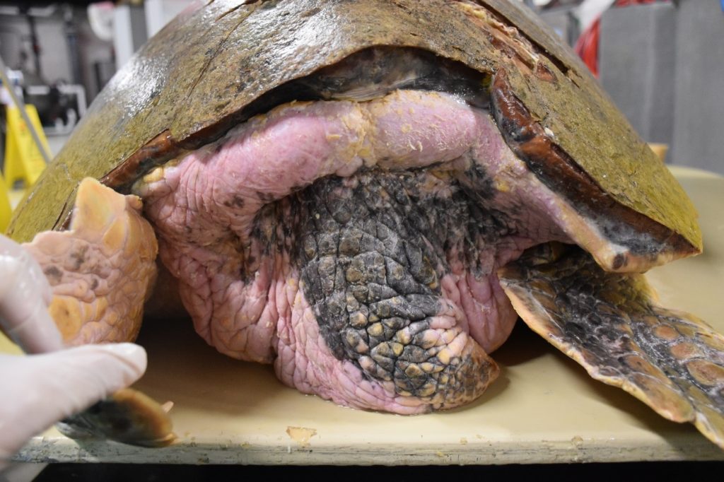 ng in to quite the picky eater. She seems to only have a taste for salmon, and refuses to eat any other type of fish we offer! Being such a large turtle she is already eating close to 3 pounds of food per day. Luckily for us, she’s not quite as messy as our other picky eater, Lady! Today Awendaw received a second ultrasound by staff vet, Dr. Shane Boylan, to determine if there were more shelled eggs that needed to be deposited. The ultrasound revealed only developing egg follicles which should get reabsorbed during her hospital stay. We will continue to monitor their development with repeat ultrasounds.
