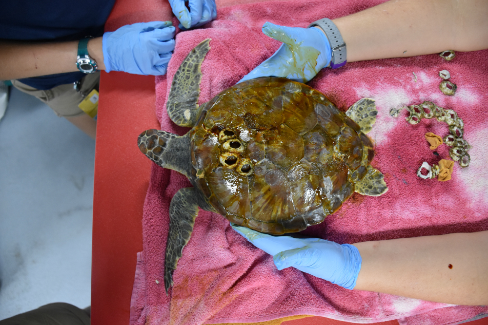 October 15, 2018: Ginny has recently received medical clearance and is now ready for release! This young turtle has had one of the most amazing transformations of our 2018 patients! Hard to believe that only a few months ago she was covered in barnacles. Today, she is unrecognizable.
