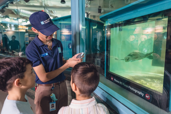 What better way to make memories with loved ones than to meet a wild new friend together? A visit to the Aquarium isn’t complete without an animal encounter! Throughout the day, Aquarium staff can guide you to gently touch some of the creatures in our care, like snakes, turtles, stingrays and even sharks! See the Info Desk for more information during your visit.