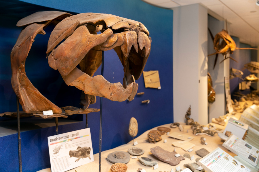 In 2017, the discovery of Coronodon havensteini or the “Wando Whale” made headlines. This species swam around South Carolina approximately 30 million years ago. They weren’t using their saw-blade teeth for chewing or tearing food, but instead are one of the earliest transitional feeders, using these teeth to filter small food from the water. Other extraordinary discoveries include the smallest cetacean ever discovered, Inermorostrum xenops, an early toothless dolphin that relied on suction feeding, and Genus Y, the “killer whale of the Oligocene” that is currently being studied. The design of skeletal structures provides modern day researchers with information about the unique feeding methods and movements of extinct animals. For example, walruses like Ontocetus emmonsi used to live off the South Carolina coast; that’s right — walruses here in the Lowcountry! The lack of orbital eye sockets shows researchers that they could force their eyes out, helping them to see when feeding.