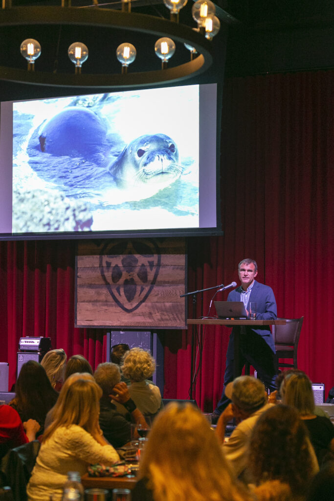 After a short journey to Daniel Island, guests filled Dockery’s and were ready for an adventure. We welcomed Scott Snider, a renowned natural history filmmaker whose work takes him around the world as an accomplished, underwater long lens and macro cinematographer. Snider is also the South Carolina Aquarium Education Programs Committee Board Chair and plays an integral role in the the Aquarium’s Reef Research Project.