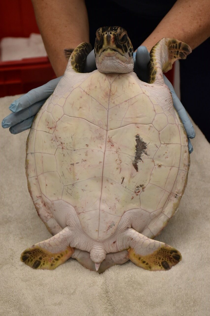 March 1, 2020: Kiara had her checkup with our veterinary staff, and a good amount of the dead bone from her head and plastron was debrided. Her wounds are healing well and she is slowly gaining weight. Kiara was moved up to a larger tank in Zucker Family Sea Turtle Recovery, where guests can now see her progress and her improvements firsthand!